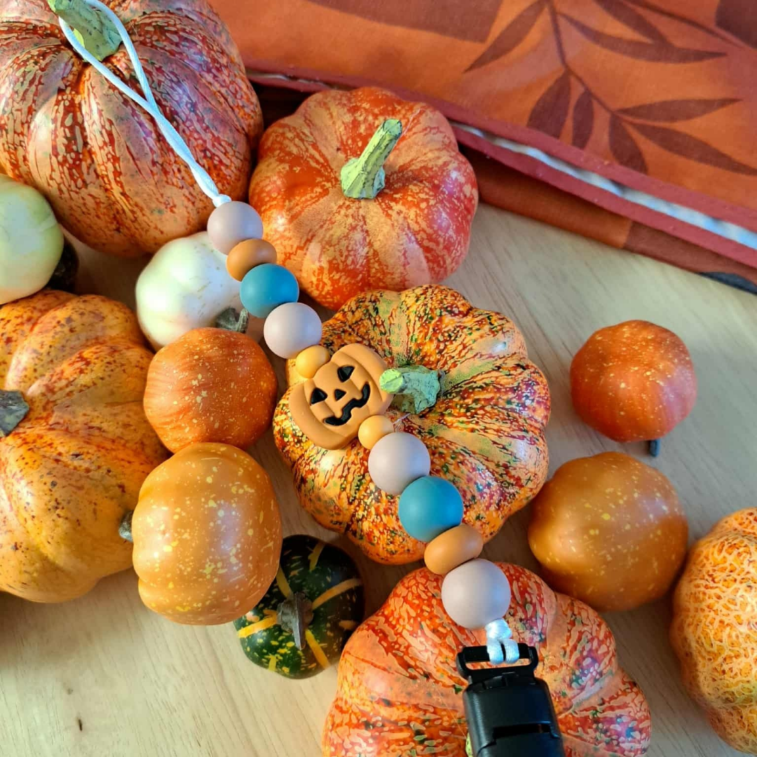 Apporte une touche automnale mignonne et pratique avec notre attache-suce Citrouille.