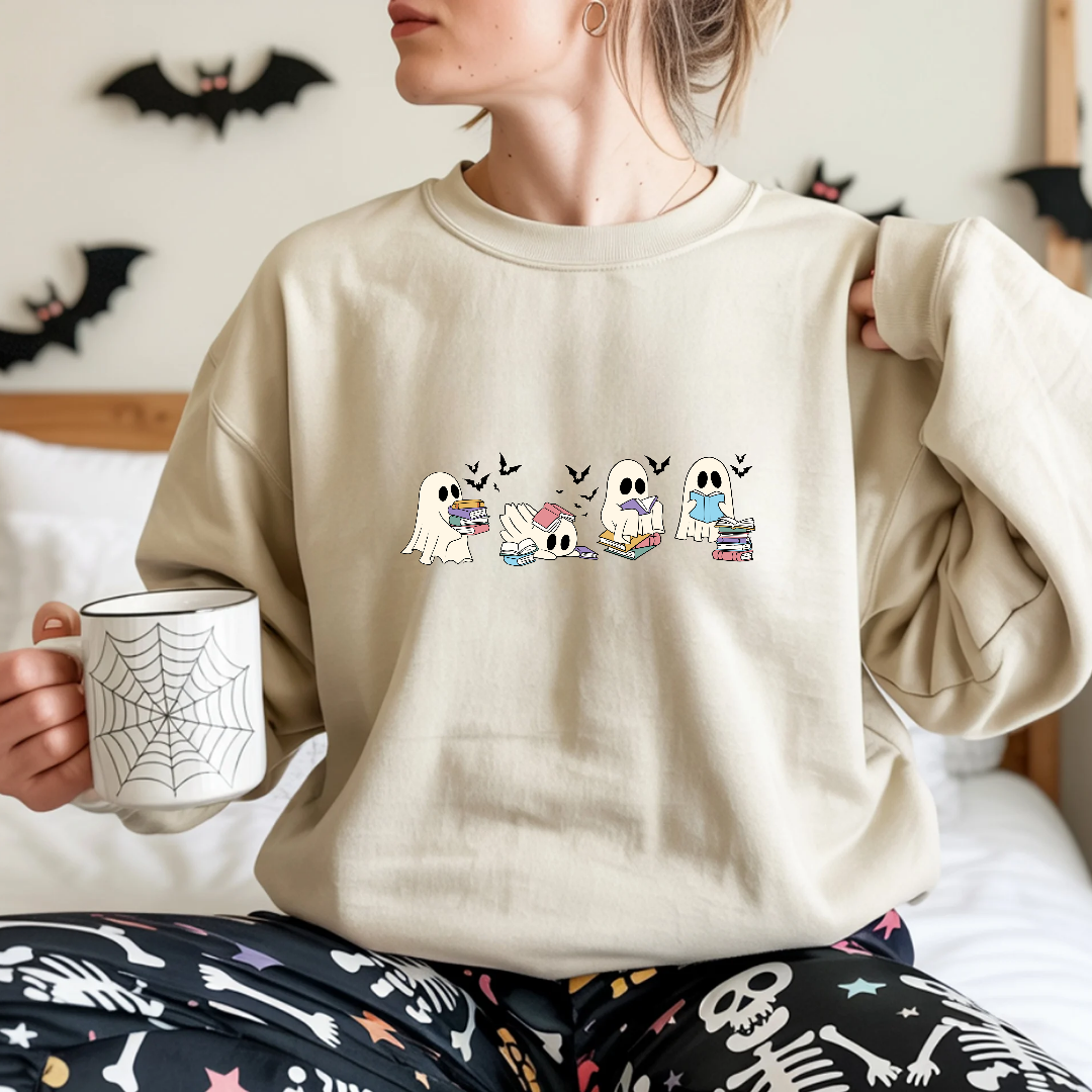 Affiche ton amour pour l’automne et la saison de l’épouvante avec ce chandail à manches longues orné d’un adorable fantôme.